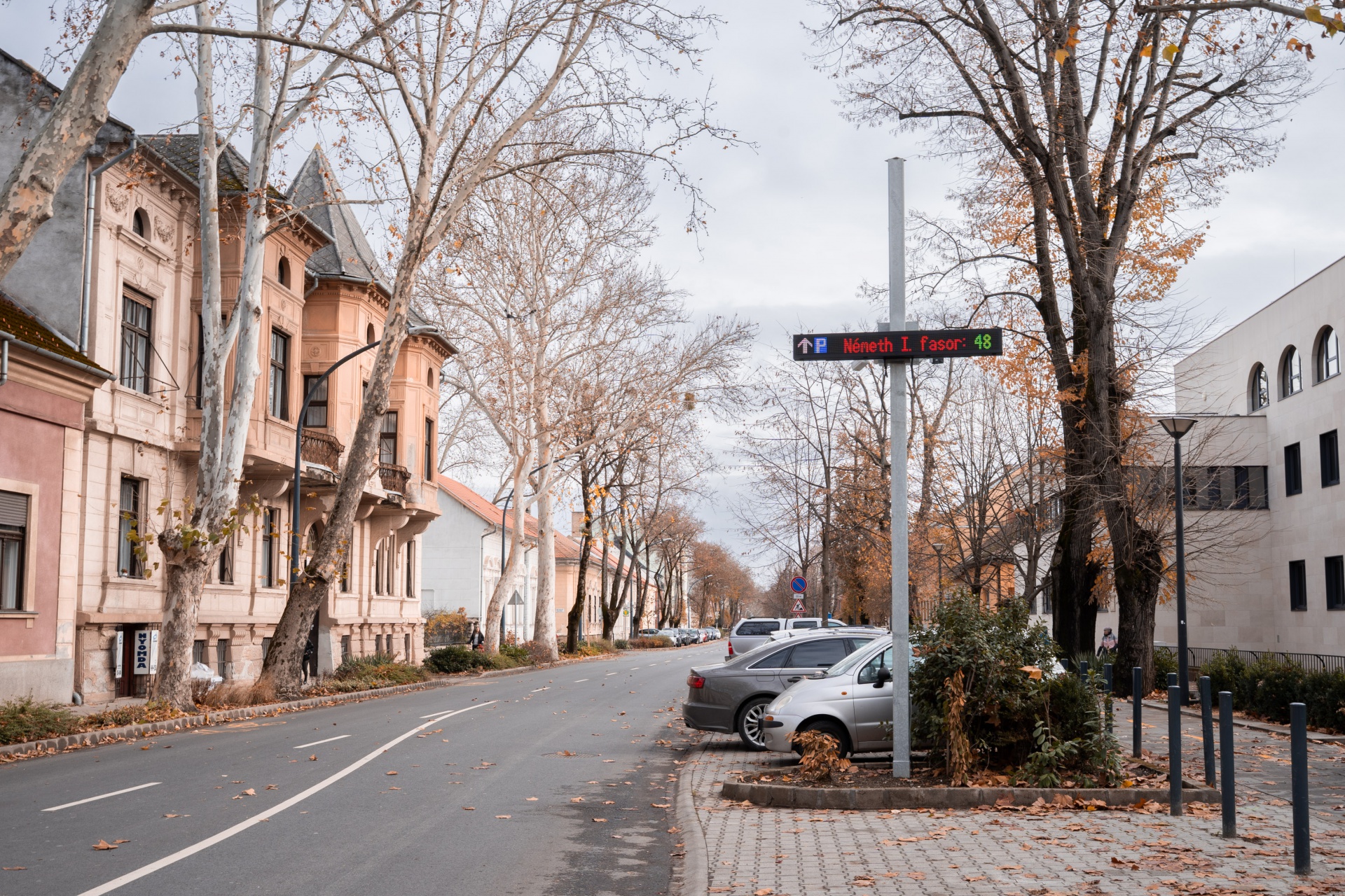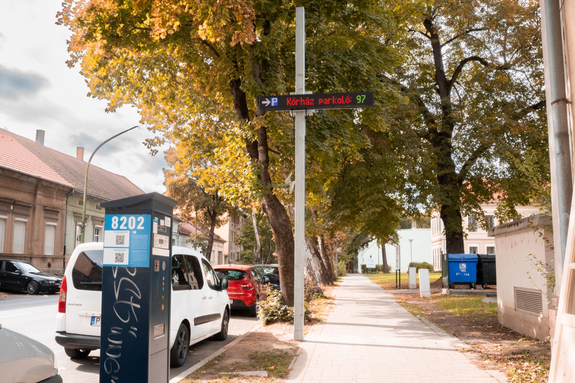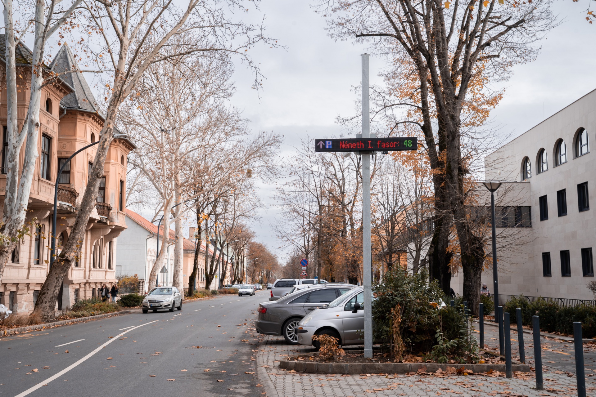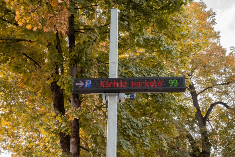 Kijelzőkön lehet látni, mennyi szabad parkoló van a belvárosban.