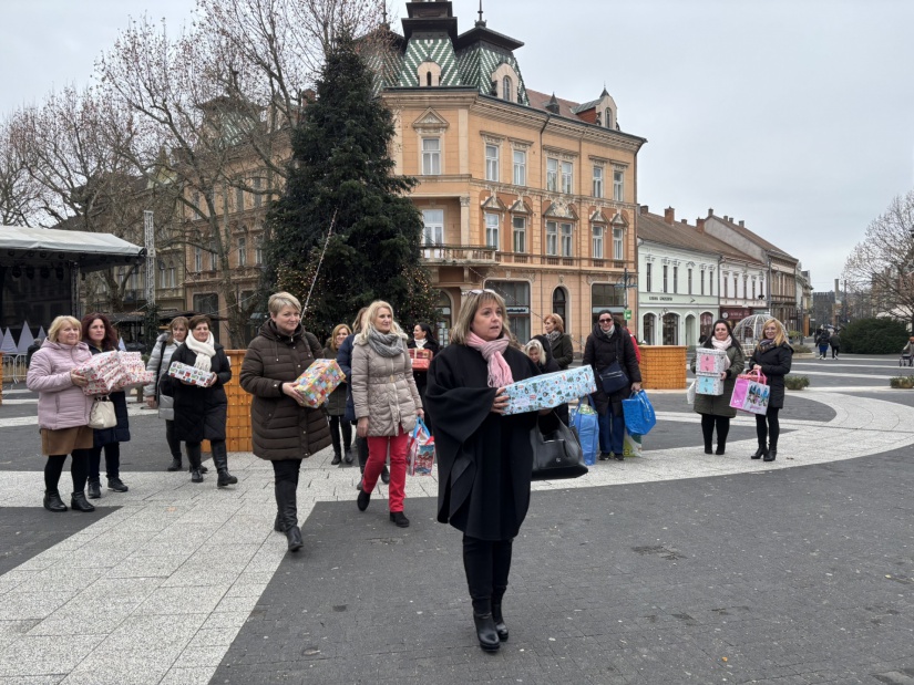 Hétfő délután a város valamennyi óvodavezetője ajándékkal teli cipősdobozt vitt a Kossuth téren található Ajándékkuckóba.