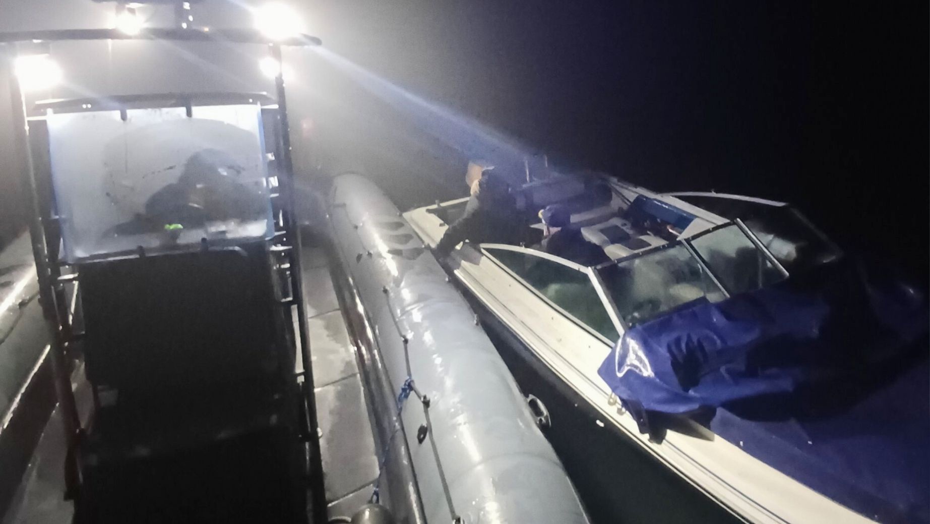 A kétségbeesett férfiakat nem sokkal később, mintegy másfél kilométerre találták meg a szárazföldtől, majd az elektromos vízi járművet a kikötőbe kísérték.