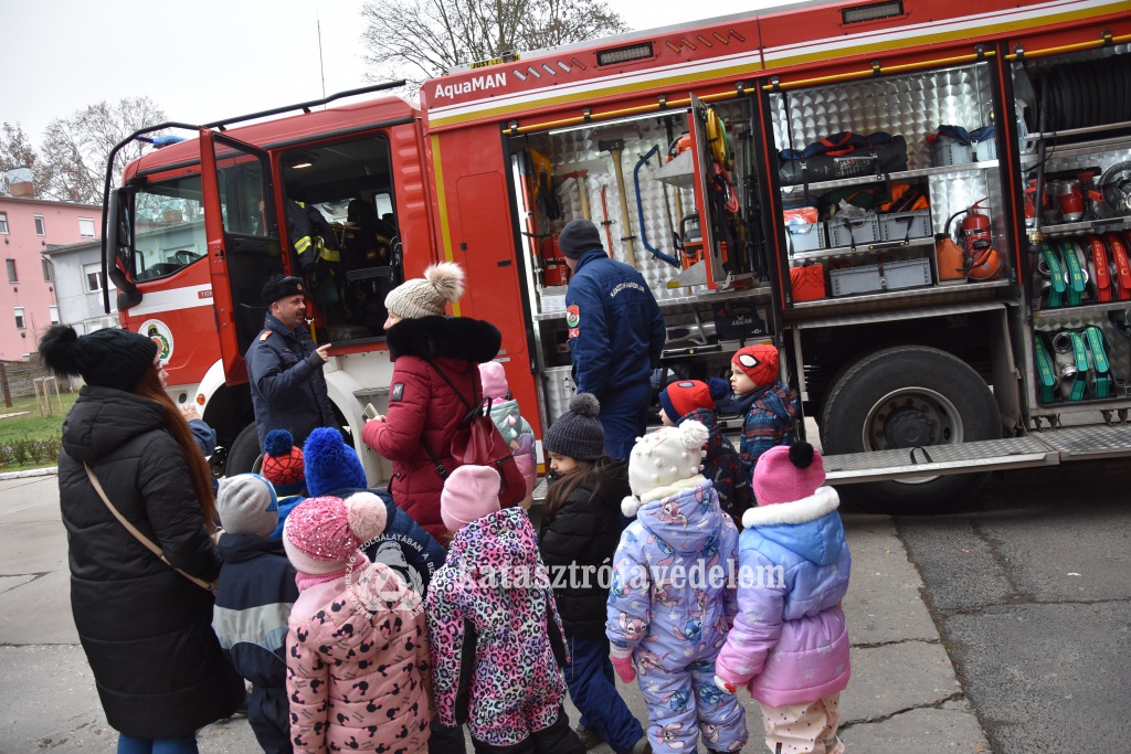 A kedvesség viszonzásaként a tűzoltók betekintést engedtek az óvodásoknak a mindennapi életükbe, sőt megismertették velük a beavatkozásoknál használt eszközeiket is.