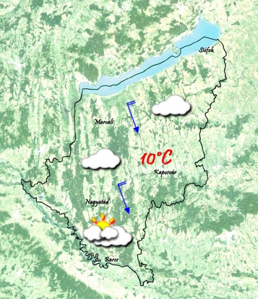 Szerdán délután egy hidegfront sok felhőt és kisebb esőt hoz a térségbe. A rossz idő egészen a hétvégéig kitart. A lehűlés csak a nappali órákban érzékelhető majd, reggelente viszont nem fog fagyni. A hétvégén már érezhető lesz újra a tavasz.