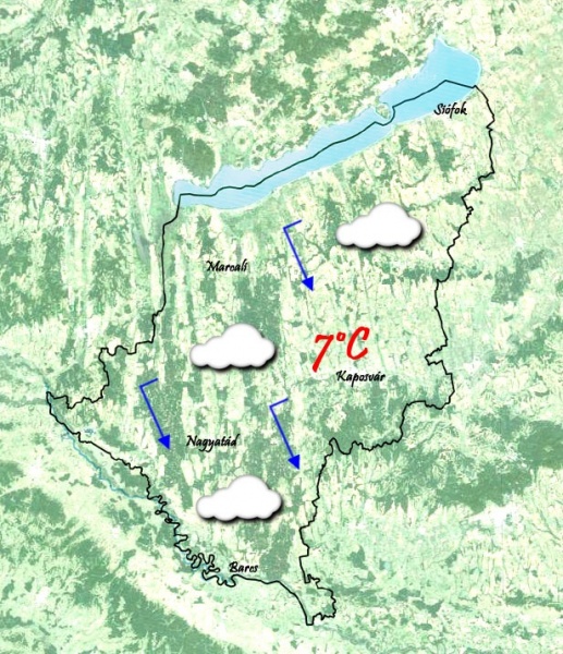 Csütörtökön reggel borult lesz az ég. A korábban tapasztalt fagyok megszűnnek. 2°C-ig tud csak lehűlni a levegő a vastag felhőtakaró miatt. Az élénk északnyugati szél szinte egésznap fújni fog. Délután egy-két zápor mellett továbbra is a felhők uralják az eget. 7°C-ig emelkedik a hőmérséklet, de ezt jóval hidegebbnek érezzük majd a szél miatt.