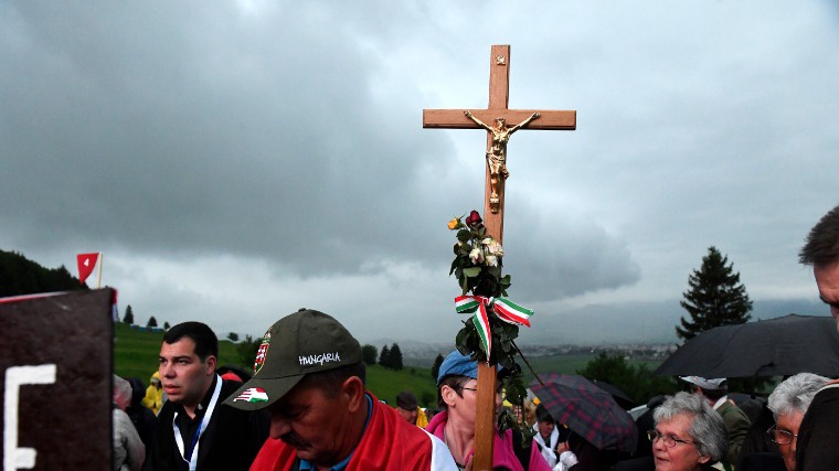 Órákkal Ferenc pápa érkezése előtt már hívők ezrei foglalták el a szakadó esőben a Kissomlyó- és a Nagysomlyó-hegy közötti nyerget. A zord időjárás azonban nem szegte a zarándokok kedvét – mondta el Böjte Csaba Ferences rendi szerzetes.