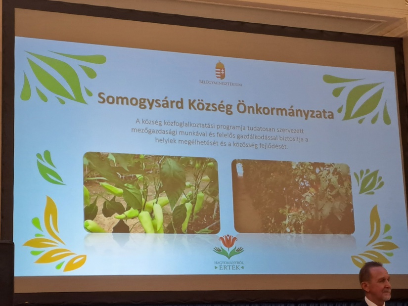 Az idei évben 20 közfoglalkoztató képviselője, köztük Somogysárd Község Önkormányzatának polgármestere, Fentős Zoltán vehette át a 10 millió forint díjazással járó szakmai elismerő oklevelet Réthy Páltól, a Belügyminisztérium közfoglalkoztatásért felelős helyettes államtitkárától. Az ünnepségen a Somogy Vármegyei Kormányhivatalt Pressingné Bánkuti Ágnes foglalkoztatási főosztályvezető és Fehérvári-Vass Eszter közfoglalkoztatási osztályvezető képviselte.