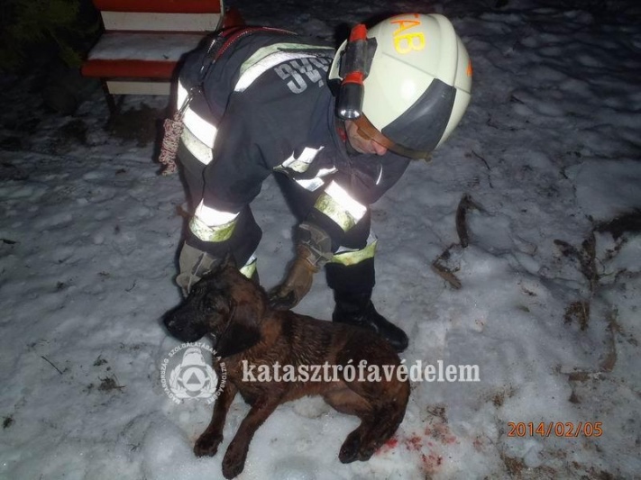 Az Arany János utcai lakóház udvarán lévő kútban mintegy 30 centiméter víz volt, ezért az eb életének megmentéséért az egység gyors beavatkozására volt szükség. Egy mentőkötél segítségével leengedtek egy tűzoltót a kútba, aki megnyugtatta a rémült kisállatot, majd kimentették és átadták a helyszínre siető állatorvosnak.