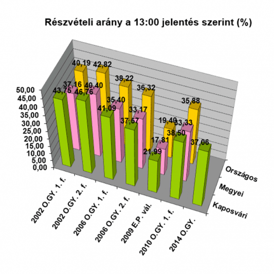 11 óráig a szavazásra jogosult somogyiak 23,57 százaléka adta le voksát, ez egészen pontosan 61.087 szavazót jelent. Az országos arány kicsivel alacsonyabb, 23,23 százalék.