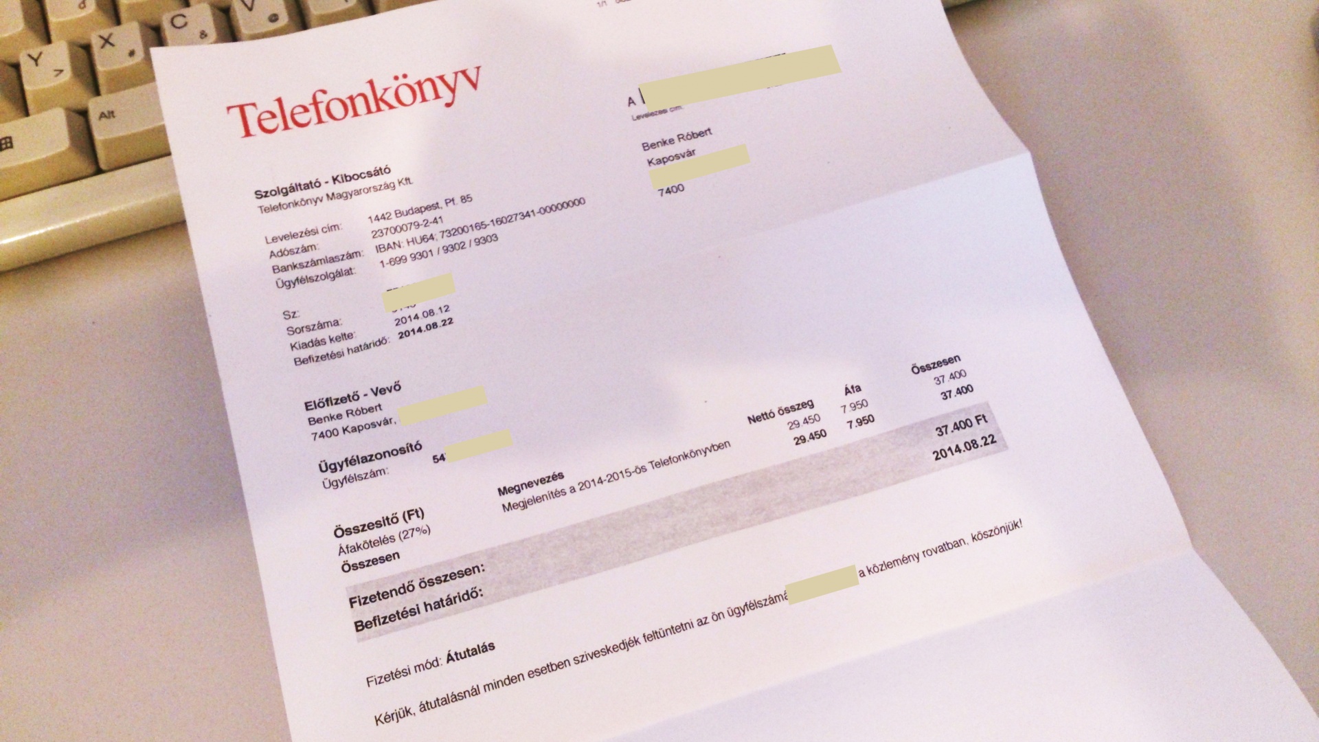Figyelmetlen cégeknek és magánszemélyeknek ismét lehetőségünk van 37 400 forintot kidobni az ablakon. Négyszer. Visszatért a Telefonkönyv Magyarország Kft.