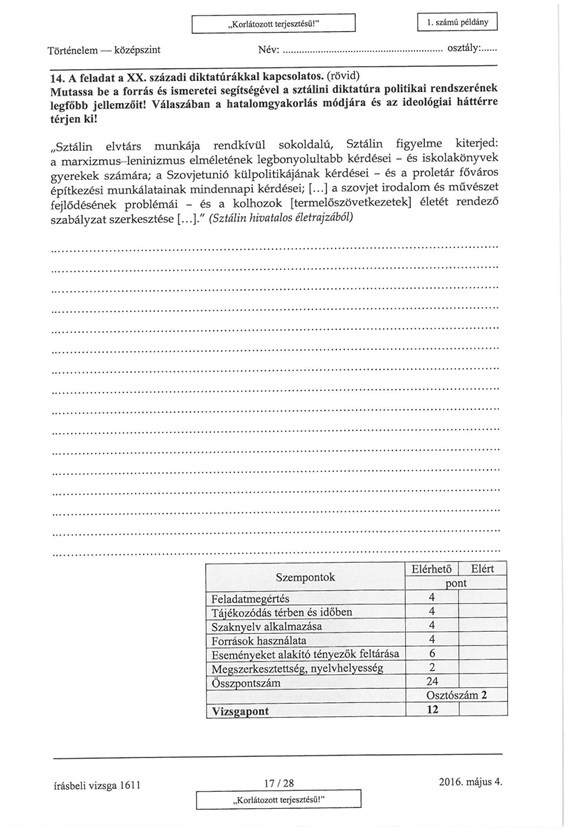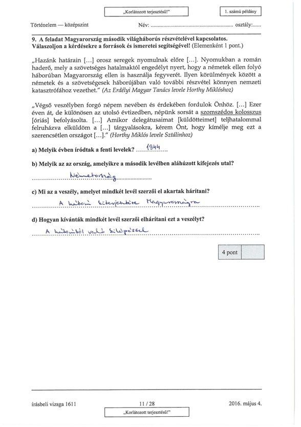 Az eduline.hu jóvoltából egy szaktanár elkészítette a nem hivatalos megoldását a rövid választ igénylő feladatsornak, hogy tájékozódni tudjatok az elérhető pontszámotokról.