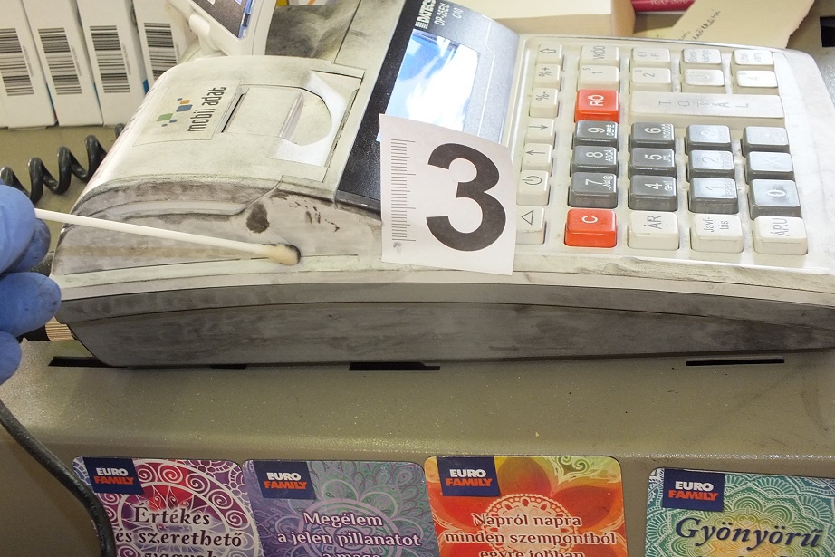 A férfi próbált többször is a kasszához közelebb kerülni és pénzt kivenni, azonban az alkalmazott ezt megakadályozta, ezért végül üres kézzel távozott az üzletből.