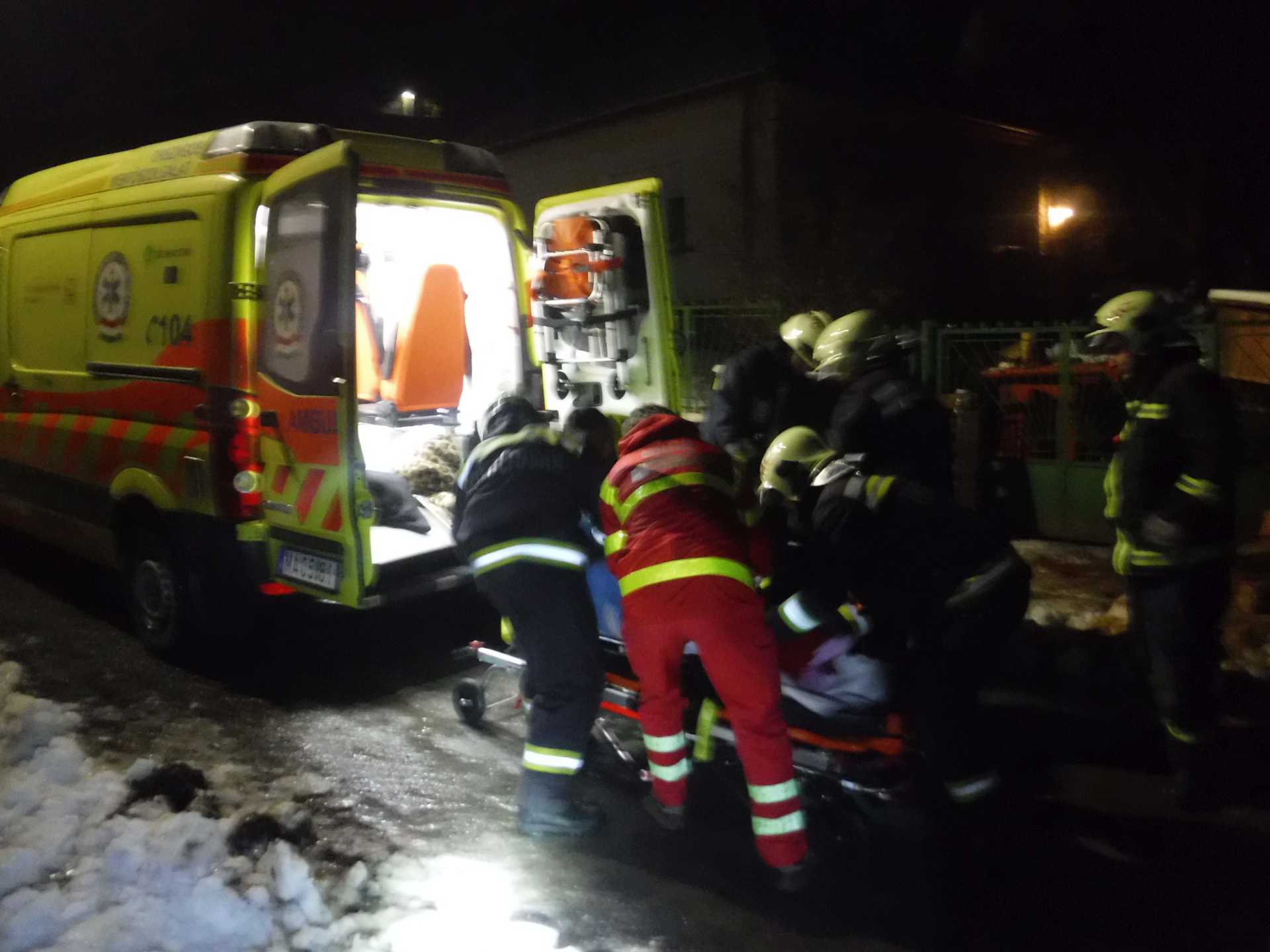 A mentőszolgálat munkatársai kerekesszékbe ültették a beteget, a csúszós útviszonyok miatt a tűzoltók így tudták biztonságban, közös erővel, egymásba kapaszkodva eljuttatni az asszonyt a mentőhöz. A beteget ezt követően kórházba szállították.