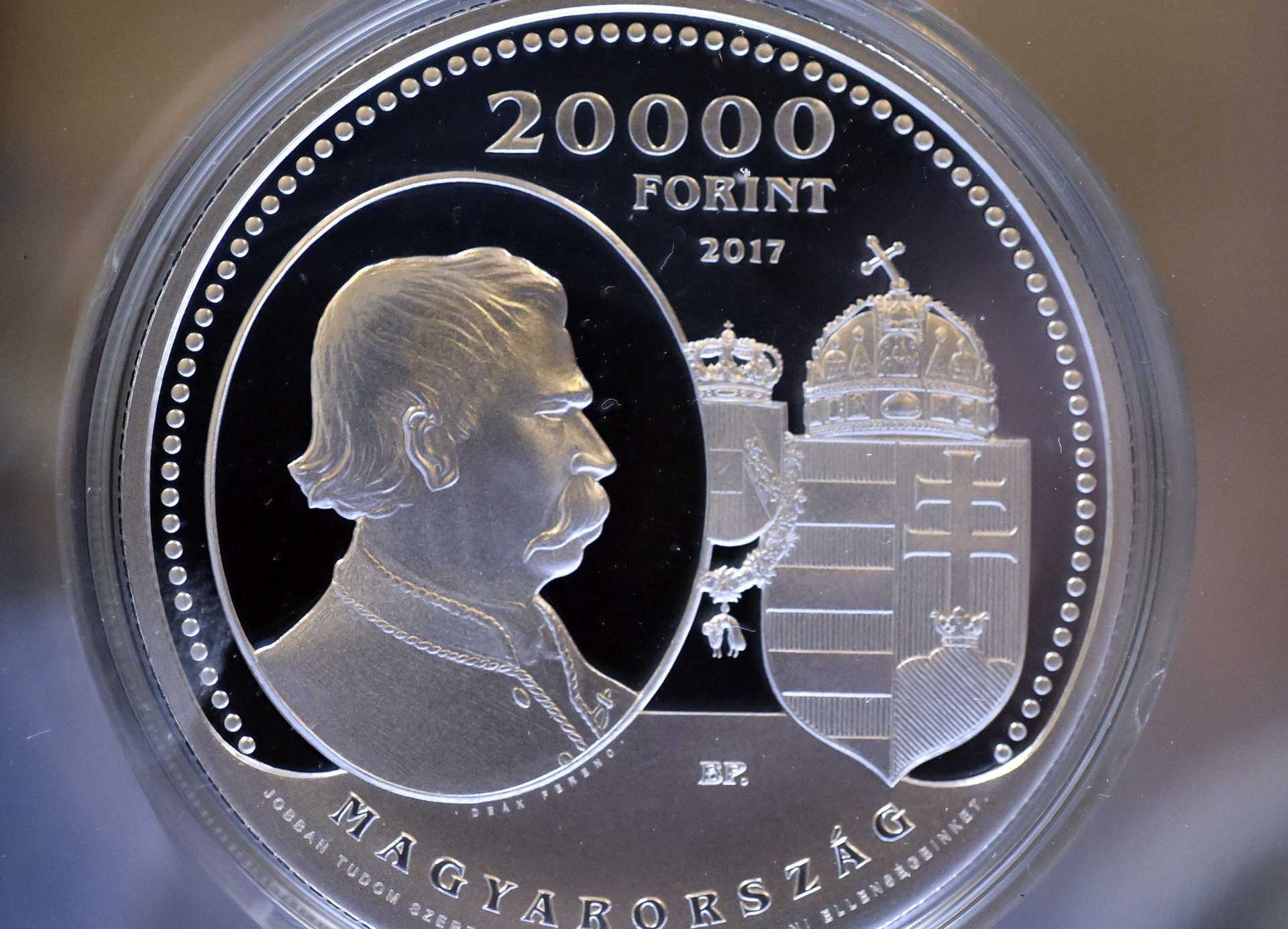 A Magyar Nemzeti Bank az 1867-es kiegyezés 150. évfordulójára 20 ezer forint névértékű ezüst emlékérmét bocsátott ki hétfőn a Magyar Nemzeti Múzeumban, Budapesten. Az érme átmérője különlegesen nagy, 52,2 milliméter, tervezési újdonságnak számít a visszahajló belső perem is.