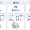 Az ország nagyobb részén 25, 26 fok körüli, főként a Tiszántúlon 27 fok feletti középhőmérséklet várható. Átmeneti felfrissülést napközben a záporok, zivatarok hozhatnak.