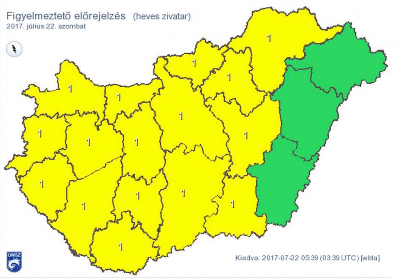 Délelőtt a Dunántúlon már kialakulhat a záporok mellett néhol zivatar is. Délután és este szórványosan számíthatunk zivatarokra, valamivel jobb eséllyel a Dunántúl keleti részén, Duna-Tisza közén. Egy-egy heves zivatar is kialakulhat (rövid idő alatt 20-40 mm csapadékkal, nagyobb méretű jéggel és 70-90 km/h körüli szélrohammal).