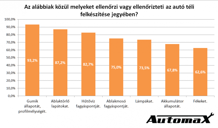 A magyar autós társadalom fontosnak gondolja a jármű téli felkészítését, csak minden 20. gépjármű-tulajdonos véli úgy, hogy nincs szükség erre – derült ki az Automax friss kutatásából.