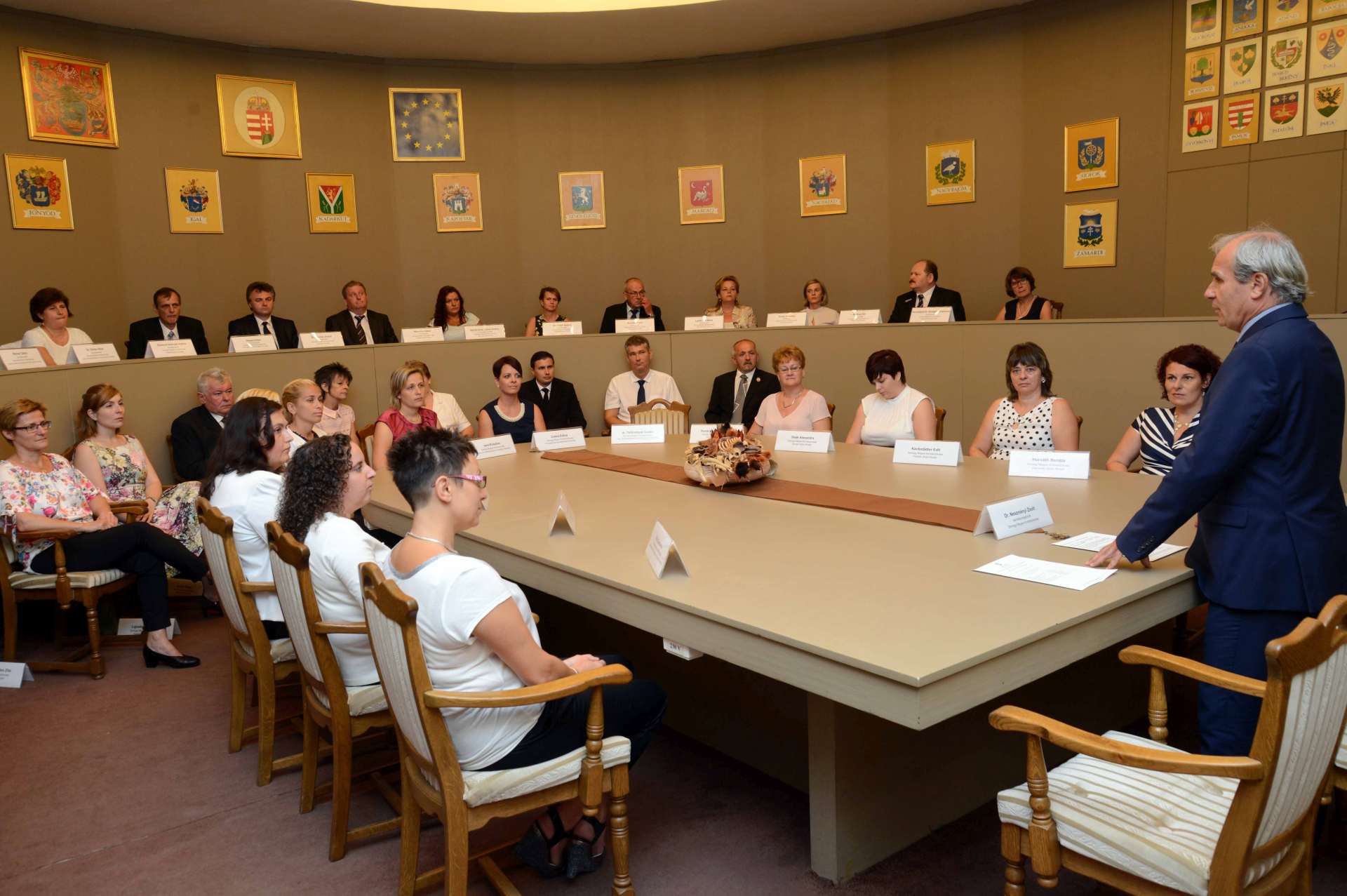 A Somogy Megyei Kormányhivatal címertermében augusztus 20. alkalmából köszöntötték azokat a dolgozókat, akik munkájukat kiemelkedően, kollégáik és az ügyfelek megelégedésére végezték és végzik.