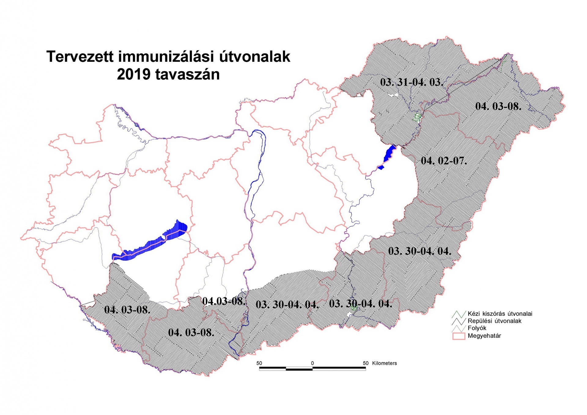 2019 tavaszán Magyarország 9 megyéjében, összesen 41.970 négyzetkilométernyi területen végzi a rókák veszettség elleni vakcinázását az állategészségügyi hatóság. A március 29. és április 14. közötti időszakban kisrepülőgépekről juttatják ki a vakcinát tartalmazó csalétkeket a kezelendő területekre, elkerülve a lakott, sűrűn beépített településrészeket.