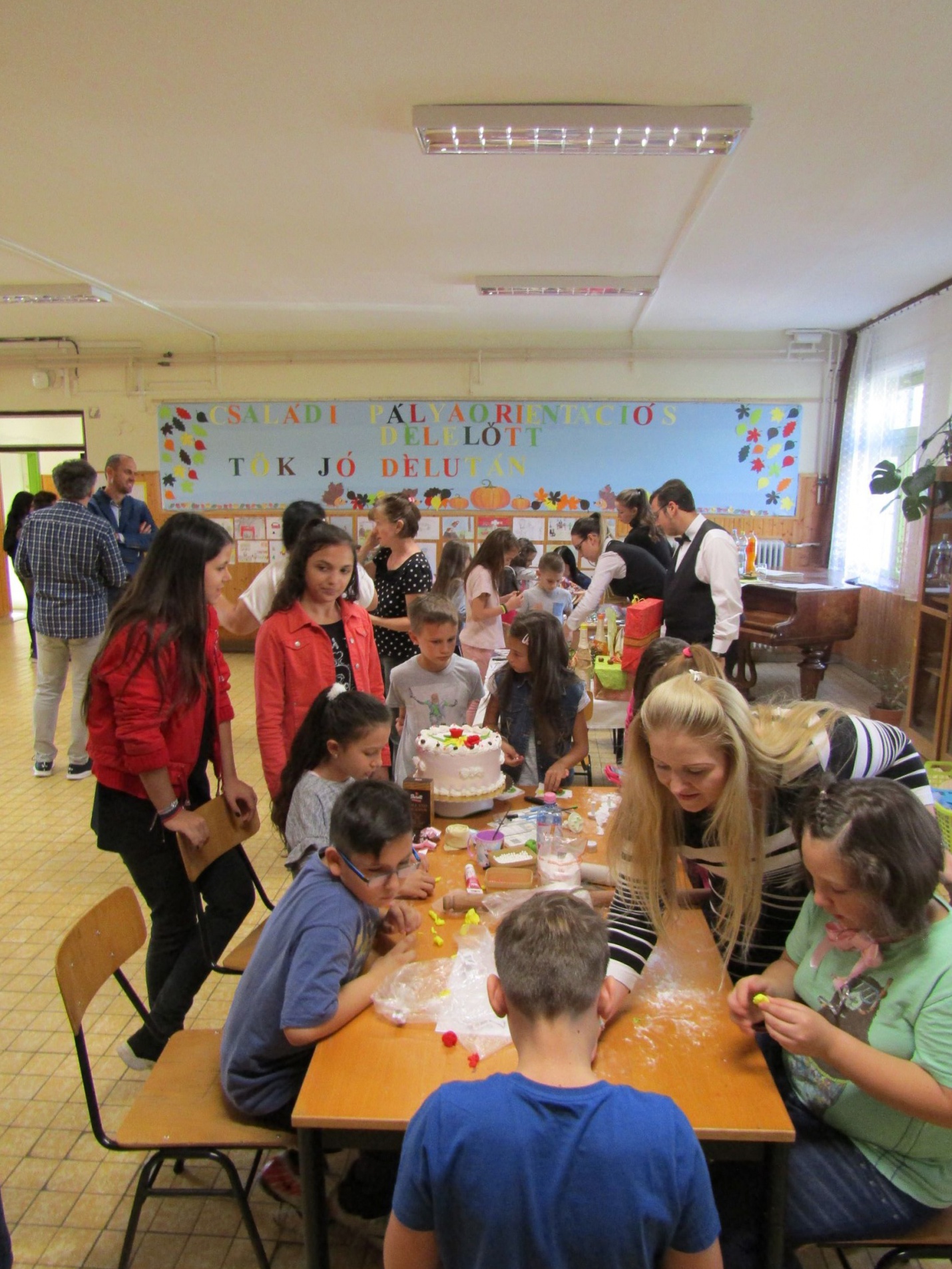 Az osztályok egy részénél a szülők, nagyszülők is bekapcsolódtak a programba. A nagy mókázásban megfáradt diákság éhét a Deseda Pékség és Cukrászüzem Kft. által készített finom tökös- mákos sütemény csillapította.