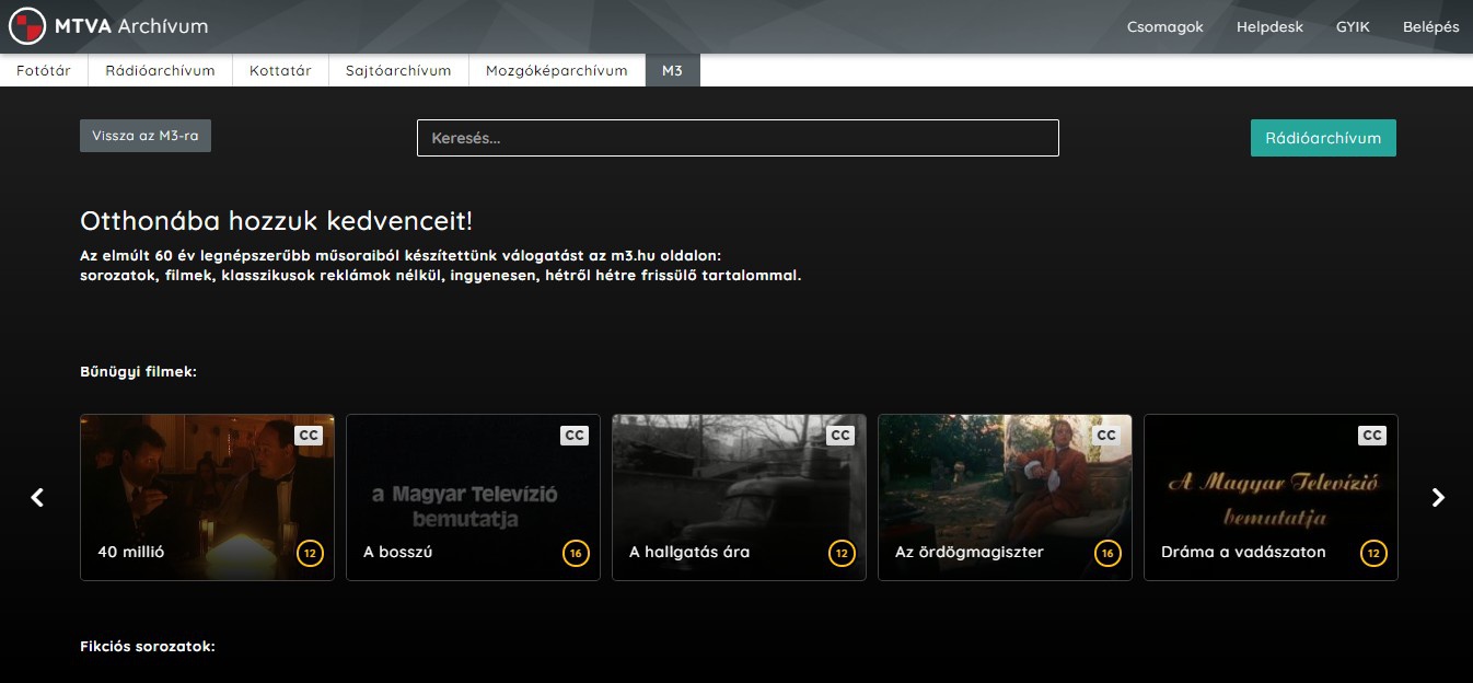 Az m3.hu is frissítette az online, otthonról is elérhető tartalmak körét az https://archivum.mtva.hu/m3/open oldalon: számos tévéfilmet és sorozatot tett közzé ingyenesen. Olyan bűnügyi filmeket és sorozatokat is láthatnak a nézők, mint a Könnyű kis gyilkosság, a Hal négyesben, a Dráma a vadászaton vagy a népszerű Linda-sorozat. A romantikus filmek szerelmesei megnézhetik például a Gyere hozzám feleségül!, a Hajnalban, délben, este, a Nadrág és szerelem, valamint A pályaudvar lovagja című klasszikusokat.