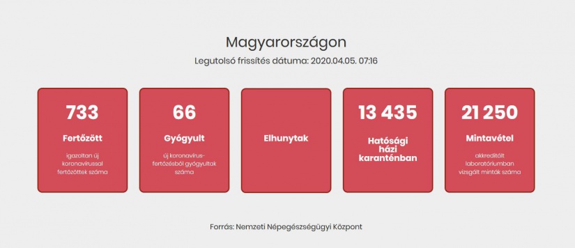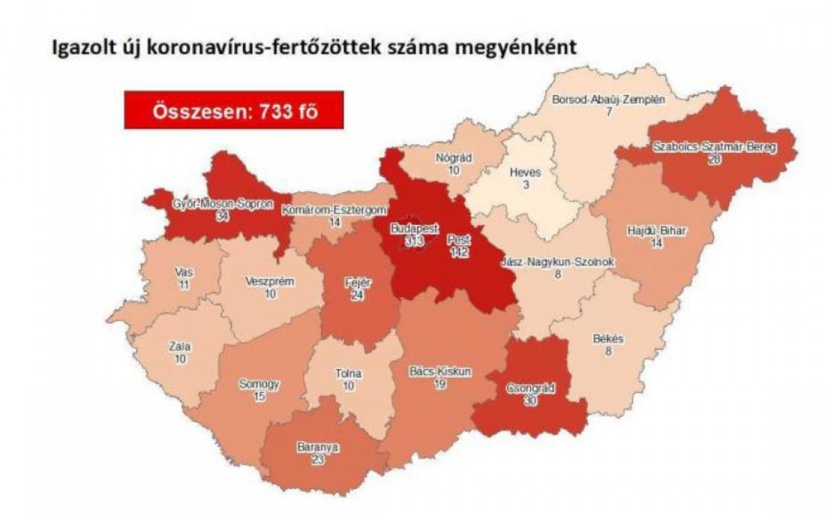 Újabb magyar állampolgároknál mutatták ki az új koronavírus-fertőzést (COVID-19), ezzel 733 főre nőtt a hazánkban beazonosított fertőzöttek száma. Elhunyt újabb két 80 év feletti idős beteg, és 66 főre emelkedett a gyógyultak száma is.