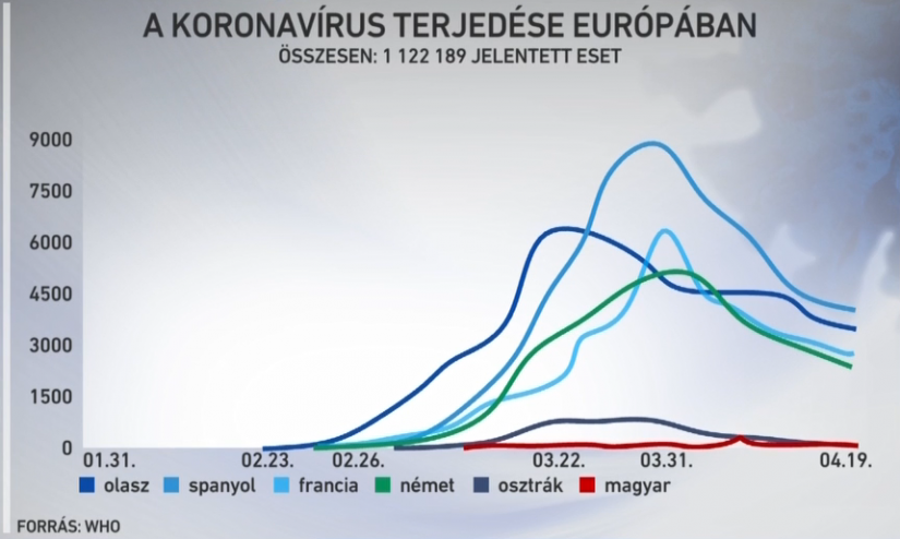 A szakértők szerint május 3-án tetőzhet Magyarországon a koronavírus-járvány. Az Egészségügyi Világszervezet (WHO) szerint azonban a magyar intézkedések hatásosak voltak és sikerült visszaszorítani a vírus gyors, ugrásszerű terjedését.