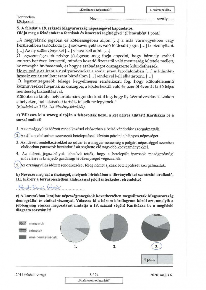 Délben véget ért a középszintű történelemérettségi, mutatjuk az eduline.hu oldalon található szaktanár által kidolgozott, de nem hivatalos megoldásokat.