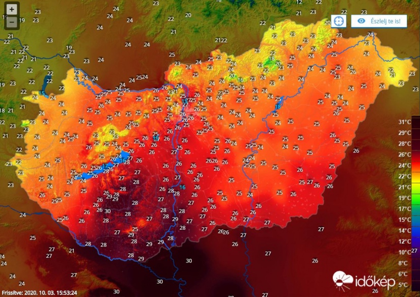 A közleményben leírták, hogy a Baranya megyei Kémesen 30,8 fokot regisztráltak, és ezzel megdőlt az október 3-ra vonatkozó maximumhőmérséklet rekordja. Mostanáig az október 3-i melegrekord 30,1 fok volt, amelyet 1985-ben Mohácson mértek.