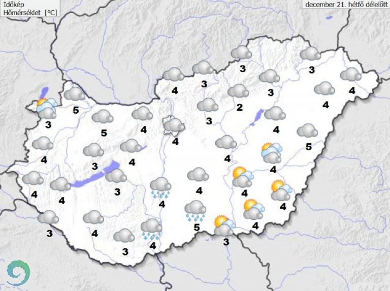 Az Országos Meteorológiai Szolgálat előrejelzése szerint hétfőn is marad a borongós idő. Helyenként szitálás, a déli megyékben délelőtt néhol gyenge intenzitású eső is lehet.