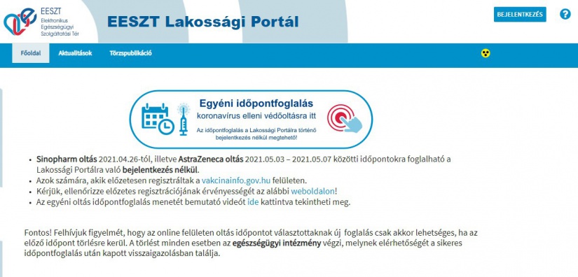 A pénteki leállás után ismét működik a Elektronikus Egészségügyi Szolgáltatási Tér online időpontfoglalója. AstraZeneca és Sinopharm vakcinára lehet regisztrálni .