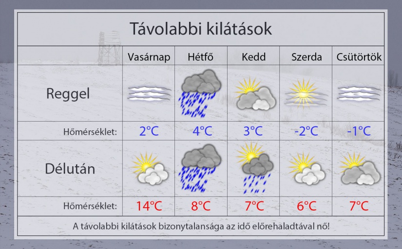 felhős lesz az ég, de csapadékra nem kell számítani. 11 fokig emelkedik a hőmérséklet. Gyenge lesz a