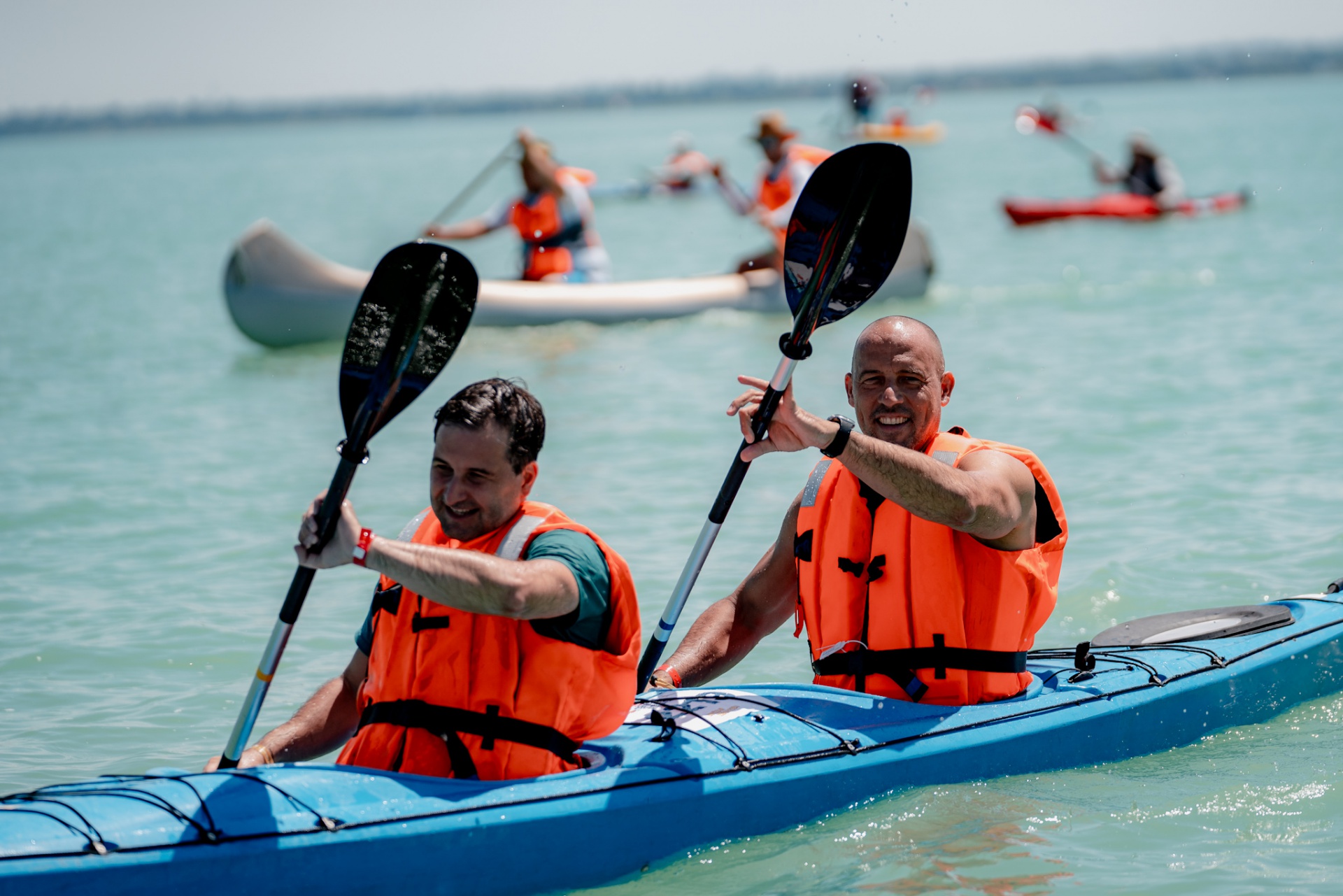 Idén az időjárás nem akadályozta a Balaton-átevezést, amely során során hagyományosan, Zamárdiból indulva, Tihany közelében fordulva bárki teljesíthette a 8 kilométeres távot.