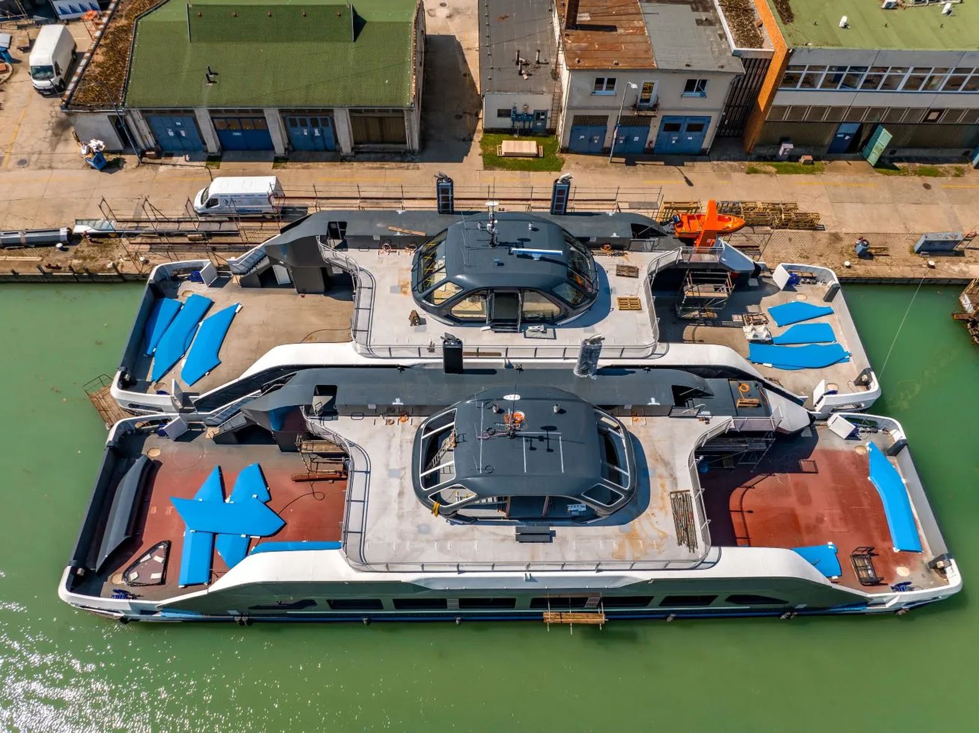 A hajók összeszerelése ütemterv szerint halad. Jelenleg a belső terek belsőépítészeti, burkolási munkálatai folynak, amelyekkel párhuzamosan zajlik az ablakok beszerelése, a tetőszerkezetek építése, valamint a klímarendszerek és rádiónavigációs rendszerek beillesztése. Hamarosan pedig megkezdődnek a beüzemelési feladatok is. A forgalomba állás engedélyezését hatósági szemle előzi meg. A kifejezetten a Balatonra tervezett, egyedi kompok és katamaránok a legmodernebb környezetvédelmi normáknak (EUR Stage V.) megfelelő motorokkal rendelkeznek, modern kormányzással és technológiákkal felszereltek, és elődeiknél gyorsabb − a kompok 15km/órás, a katamaránok 18km/órás − utazósebességgel bírnak.