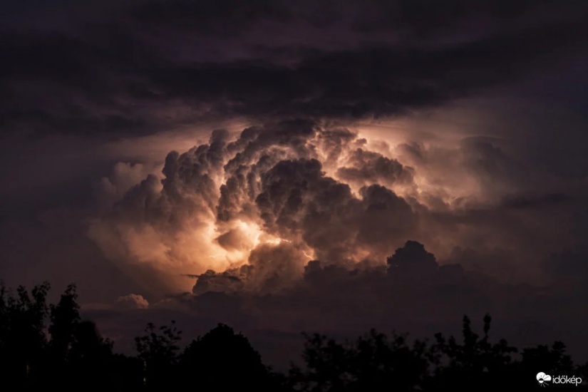 Igazi villámparádéban gyönyörködhetett az, aki megfigyelte ezt a lenyűgöző zivatart, amelyet még a Balaton környékéről is látni lehetett, a tetején a jellegzetes pileus felhővel.