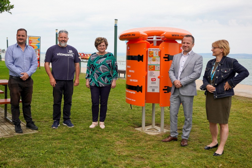 Az új állvánnyal együtt immár nyolc helyszínen várja a gyermekeket a közösségi mentőmellény-szolgáltatás. Az elsőt két évvel ezelőtt vehették használatba, azóta is jó visszajelzések érkeznek a fürdőzőktől – megnyugtató a szülők számára, hogy egy ilyen biztonságot nyújtó eszközt találnak a strandokon.