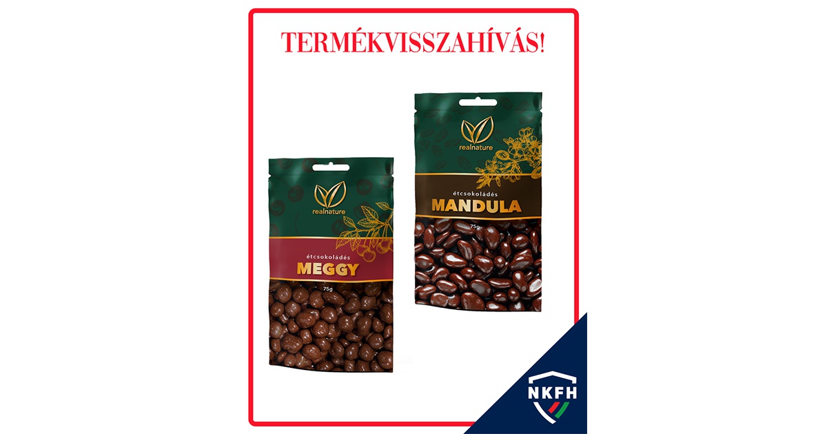 A tájékoztatás szerint a termékvisszahívás a Real Nature étcsokoládés meggy 75 g kiszerelésű, 2026. szeptember 5. minőségmegőrzési idővel rendelkező, az 5999536055323 vonalkóddal ellátott termékekre, valamint a Real Nature étcsokoládés mandula 75 g kiszerelésű, 2026. április 29. minőségmegőrzési idővel rendelkező, az 599536055293 vonalkóddal ellátott termékekre vonatkozik.