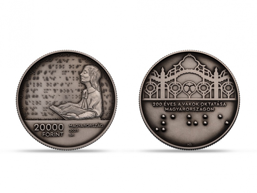 A jegybank egy 20 ezer forint névértékű ezüst, valamint egy 3 ezer forintos színesfém változatot jelentet meg. Az első, látássérült gyermekek oktatására létrehozott országos intézmény 1825-ben kezdte meg működését, nem sokkal azután, hogy Louis Braille megalkotta a vakok számára készült domború írást.