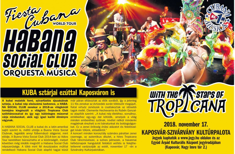 Legújabb játékunkban 1 db páros belépőjegyet sorsolunk ki a Habana Social Club november 17-i koncertjére a helyesen válaszolók között. Játsszon és nyerjen! Játékunk csütörtök éjfélig tart, ezután sorsolunk, megéri velünk játszani!
