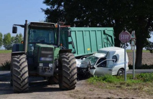 Kitörött a traktorkerék, kiömlött a gabona az úttestre