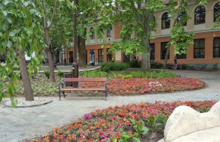 Az elhasználódott gyeprácsokat térkőre cserélték, így nem áll meg majd a víz a parkban. Új növényeket is telepítettek, így talán egy kicsit színesebb...