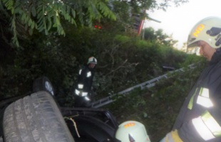 Felborult autóhoz riasztották a kaposvári tűzoltókat tegnap