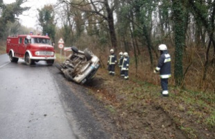 Baleset Somogyvárnál - árokba csúszott egy autó