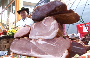 Valódi füstölt-pácolt sonkák, csülkök és tarják házi tojással, kézzel írott hímes tojások, népművészek kézműves termékei, a patcai Katica tanya népi...