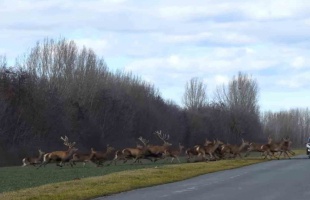 Hihetetlen szarvasinvázió az úton Lábodnál