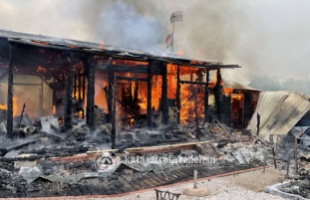Kigyulladt egy faház hajnalban Balatonszentgyörgyön