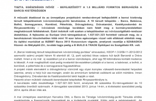 A műszaki átadással és az ünnepélyes projektzáró rendezvénnyel befejeződött a barcsi kistérség társult településeinek ivóvízminőség-javító...