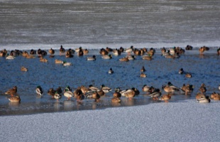 Szépen befagyott a Petörke-tó, csak a közepén maradt egy kis hely a kacsáknak, ahol százával hápogtak és napoztak, melegedtek a tegnapi éjszakai...