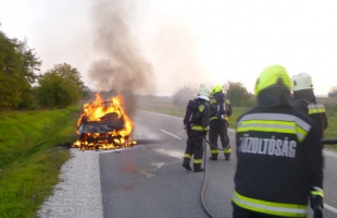 Kigyulladt egy személyautó kedden kora este a Somogy megyei Öreglak határában, a Lengyeltóti felé vezető úton.