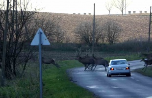 Több száz szarvasból álló rudli vonult át az úton pénteken