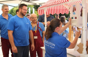 A kaposvári és a marcali Videoton gyárban a közel 40 fokos kánikula nem csak a hőségről, hanem a közös nassolásról is szólt hétfő...