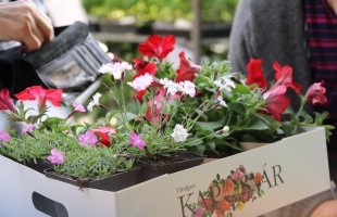 Virágözön a Kaposvári Nagypiacon, ovisok ültettek virágot a Színház parkban