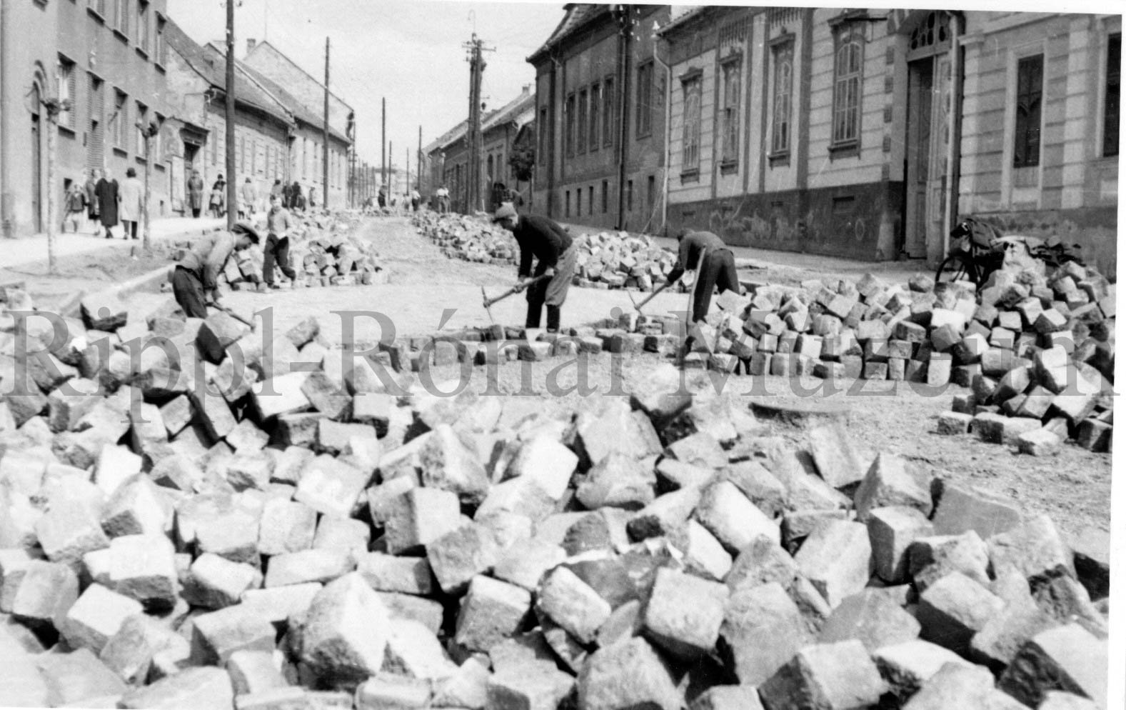 Felbontották az Április 4. (ma: Zárda u.) kövezetét, hogy helyébe korszerű műutat építhessen a Közúti Üzemi Vállalat